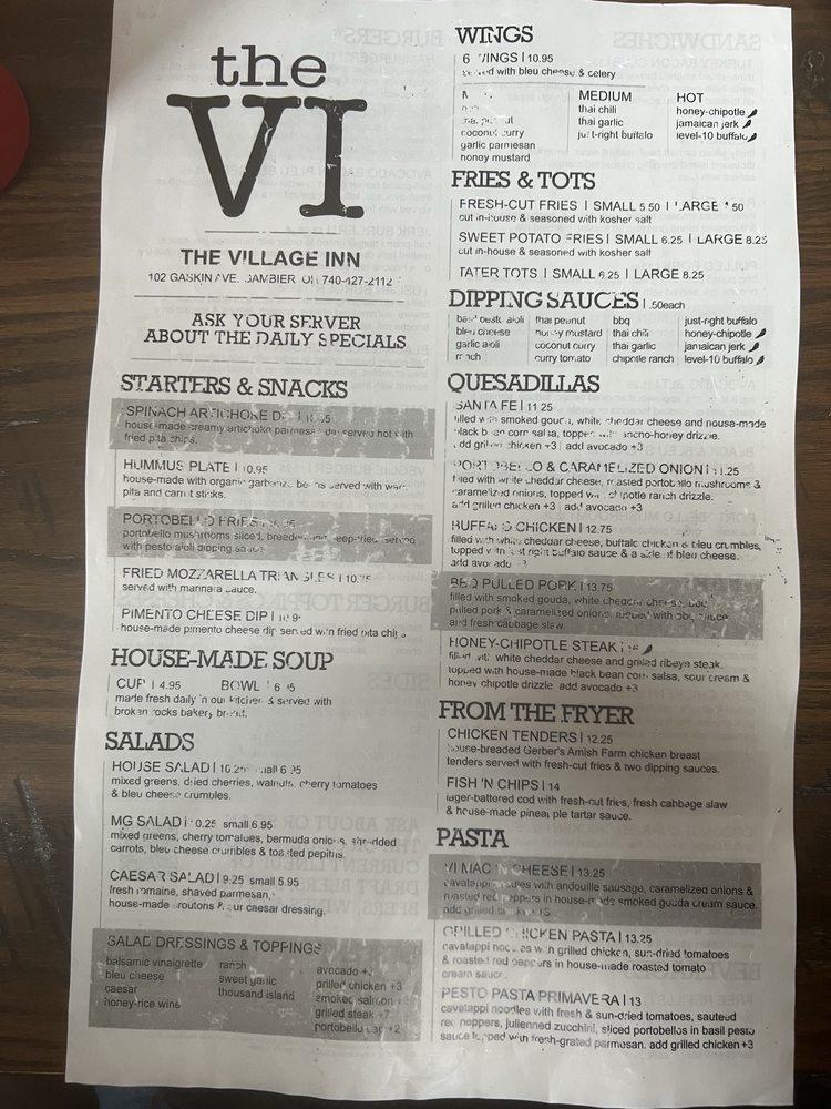 Welcome to The Village Inn, where deliciousness reigns supreme in Gambier, OH. Specializing in burgers, wraps, and sandwiches, this cozy spot serves up mouthwatering creations that will tantalize your taste buds. One of the standout menu items is their 12-piece wings, freshly cooked and perfect for sharing. Customers rave about the crispy tater tots and rich mac and cheese, perfect for pairing with their extensive beer selection, which features local and popular brews.